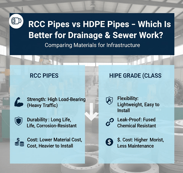 RCC vs HDPE Pipes – Which Is Better for Drainage & Sewer Work?
